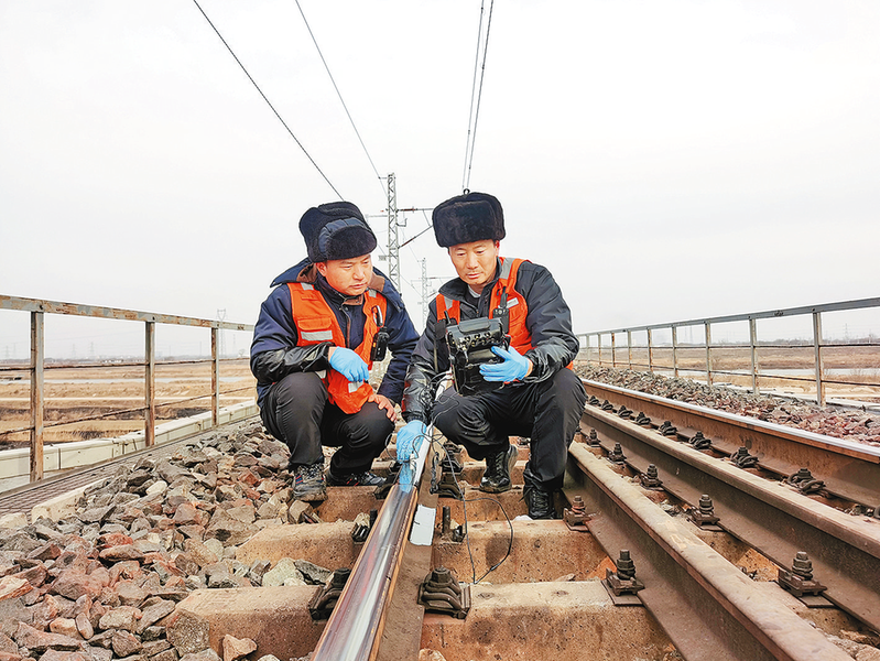 时值岁末,朔黄铁路时刻绷紧安全弦,全面强化线路无线探伤安全检查,通过定期检查和不定期抽查等方式,及时发现安全隐患并消除,为打好“收官战”提供坚实保障。图为12月26日,线桥检修中心职工利用精密仪器进行焊缝探伤。本报记者
