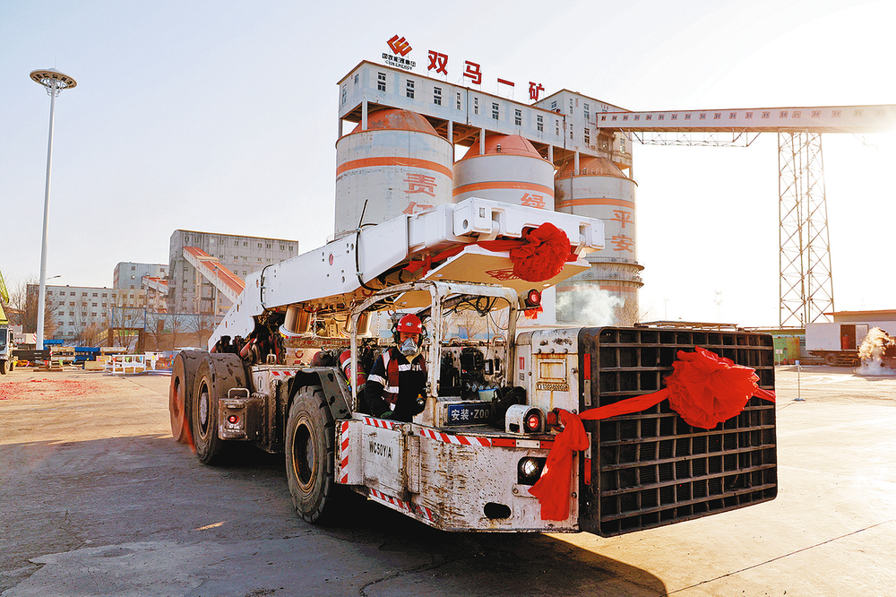 近日,宁夏煤业公司首个超长智能综采工作面在双马一矿启动安装。该工作面走向长1800米,可采储量逾320万吨,计划安装223台智能液压支架。其超长设计可大幅减少工作面搬家倒面次数和巷道掘进量,为矿井长期稳定生产奠定基础,同时配套安装刮板输送机、转载机、破碎机等大型智能化综采设备,具备一键启停、自动跟机、规划截割等先进智能化功能,可实现地面远程操控。建成投运后预计单班效率提升140%,助力矿井安全高效生产,显著提升矿井本质安全水平。图为专用支架车下放智能液压支架(摄于2025年12月16日)。