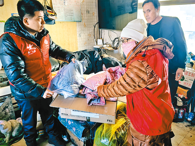 1月10日,龙源电力新能源培训中心北方基地志愿服务队为黑龙江省伊春市铁力市乡村特困家庭捐赠过冬衣物。志愿者共募集羽绒服、棉服、棉裤等过冬物资125件,走村入户,为7个特困家庭送上暖心衣物与诚挚祝福。图为志愿者向困难学生家属送上棉服。本报通讯员