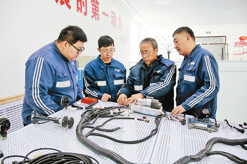 平庄煤业矿建公司高度重视人才培养工作,充分发挥技术骨干在技术、经验、作风上的“传、帮、带”引领作用,帮助青工在实践锻炼中快速成长成才。图为1月8日,技术人员(右二)为青工讲解整车线束分布实操技巧与故障排查方法。本报通讯员 毕志鹏 摄