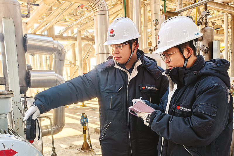 针对青工实践经验薄弱的短板,榆林化工采用“理论+实操”双轨培育模式,遴选理论扎实、技术精湛、经验丰富的老职工担任导师,手把手传授设备日常巡检和防冻防凝核心要点,推动青工在“干中学、学中练”,为装置安稳运行筑牢人才根基。图为1月4日,技术员(左)现场指导青工检查电机振动情况。 本报通讯员 刘 蓉 摄