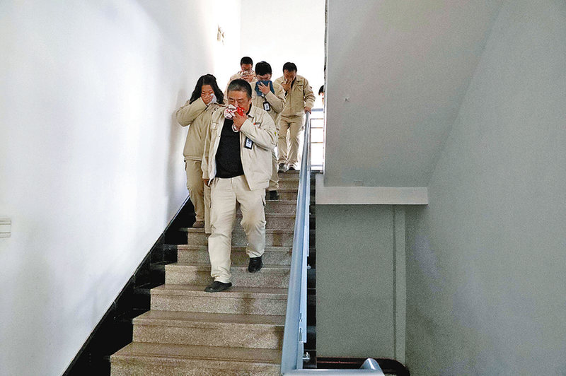 1月4日,内蒙古矸电公司组织开展火灾逃生应急演练,模拟办公楼突发火情,以演促练、以练代战,切实提升员工在紧急情况下自救互救与应急处置能力。图为演练中员工有序疏散。本报通讯员 邱瑞兵 摄