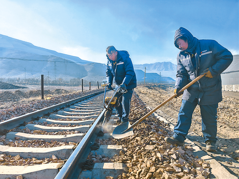 今年以来,焦化铁路公司研判季节病害,严格执行一看、二敲、三照、四卸的标准化检查程序,重点检查空吊板、轨向不良、道砟不足等隐患,做到应巡必巡、应查必查。图为1月8日,线路工进行捣固作业。本报通讯员 杨 梓 摄