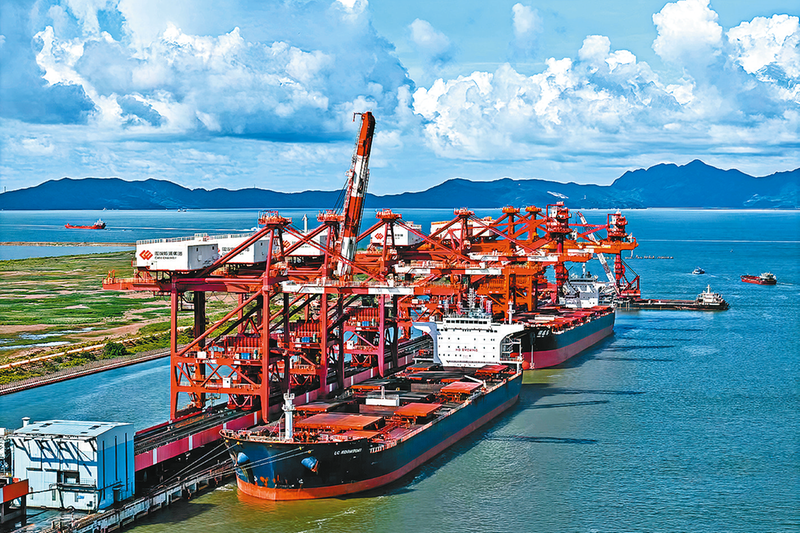 2025年,受进口煤中转业务停滞影响,珠海港务面临近300万吨任务缺口,同时原有堆存货物导致场地库存高企,严重制约新业务拓展。面对严峻形势,该公司优化工艺流程与资源配置,突破作业效率瓶颈,在稳固核心业务的同时,全力开拓高附加值新货源,成功争取到11艘次、共计69.6万余吨业务量;同步推出“快速中转”模式,全年非一体化业务快速中转量达146.5万吨,占业务总量26%,有效释放了场地资源,盘活了存量资产,推动公司在困境中实现提质增效。图为珠海港务码头卸船作业现场(摄于1月13日)。本报通讯员 易 楠 摄