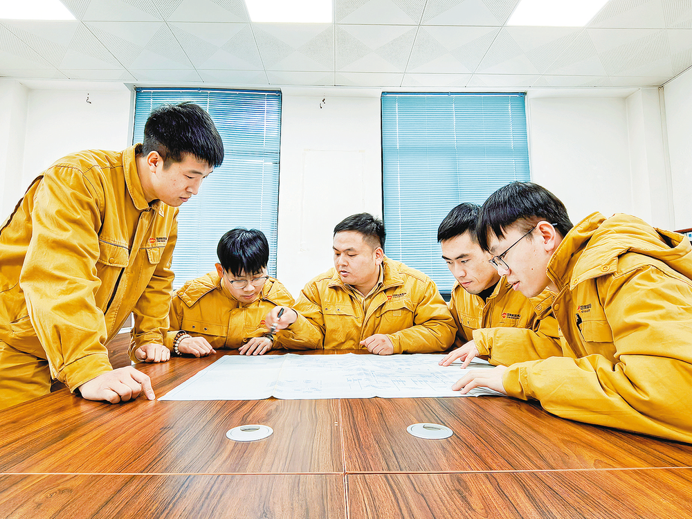 1月6日,江苏陈家港公司设备管理部热控班班长(中)为青年职工讲解系统图。一直以来,该公司设备管理部热控班高度重视人才梯队建设,始终坚持“传帮带”机制,通过岗位练兵、技能培训、实战演练等多种方式,助力青年职工快速成长,营造团结协作、比学赶超的良好氛围。本报通讯员 倪帅师 摄
