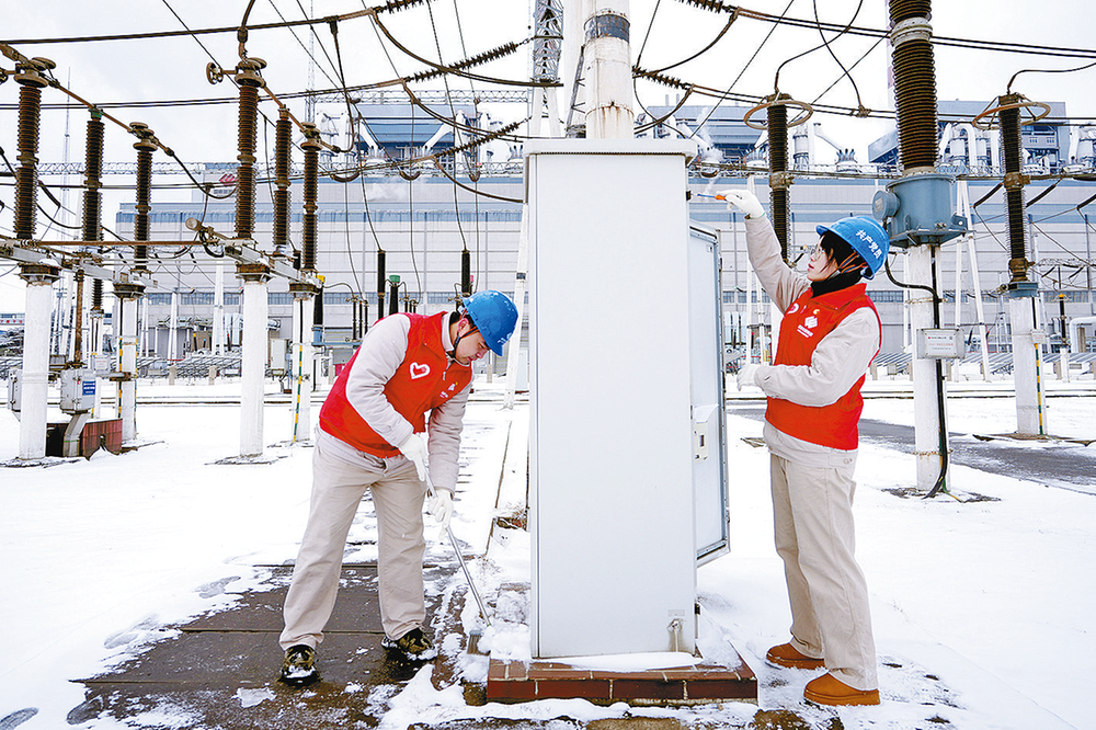 1月20日,安徽马鞍山地区遭遇强降雪天气,气温断崖式下降,给电力生产运行和能源保供工作带来严峻挑战。安徽马鞍山电厂闻雪而动、迅速部署、精准施策,切实筑牢安全生产防线,保障区域电力稳定供应。图为青年突击队清理压变端子箱周围积雪。本报通讯员 朱伯羽 胡唯一 摄