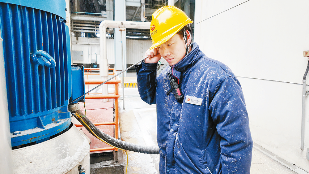 近日,豫东地区大雪,河南民权公司加大设备巡检频次,密切跟踪参数变化,提前做好各类事故预想与处置预案。针对升压站、变压器等重点区域,组织检修和运行人员协同开展拉网式隐患排查,做到隐患早发现、早处理,确保极端天气下电力、热力稳定供应。图为1月23日,职工测定锅炉酸洗废水泵电机振动情况。本报通讯员 祝寅蓓 摄