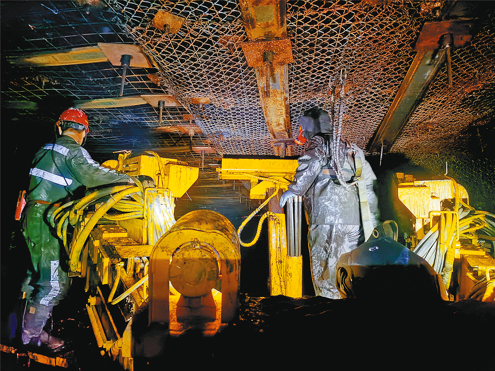 近日,国神上榆泉煤矿强化掘进工作面顶板支护质量管控,通过优化支护参数、严格执行“敲帮问顶”制度,并结合锚索支护动态监测,有效提升巷道支护的可靠性与耐久性。图为2月1日,掘进队支护人员按标准进行锚索支护作业。 本报通讯员 李晓杰 摄