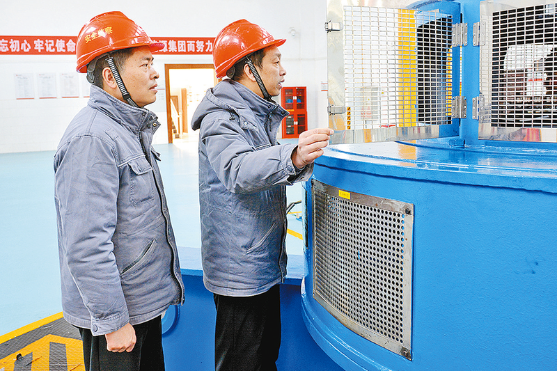 节日期间,湖北公司南河电厂运行维护人员加密设备巡检,服从电网调度指令,并从严排查消除缺陷,不留死角、不漏隐患,实现设备“零异常”运行。图为2月17日,运行人员巡视机组上导瓦温。本报通讯员 戴明 摄