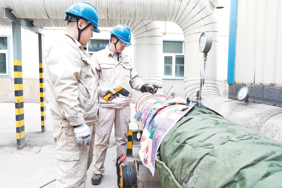 为切实提升极端天气应急处置能力,内蒙古矸电公司组织开展防寒防冻专项应急演练,以实战状态筑牢安全生产防线。图为2月10日,演练人员测试设备管道温度。