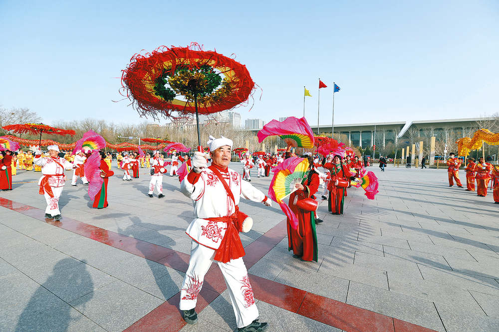 3月3日元宵佳节,宁夏煤业举办“迎新春”社火大拜年活动,舞龙、舞狮、盘鼓、秧歌等传统节目精彩上演,使广大职工在欢快的氛围中感受传统年味儿。图为活动现场。