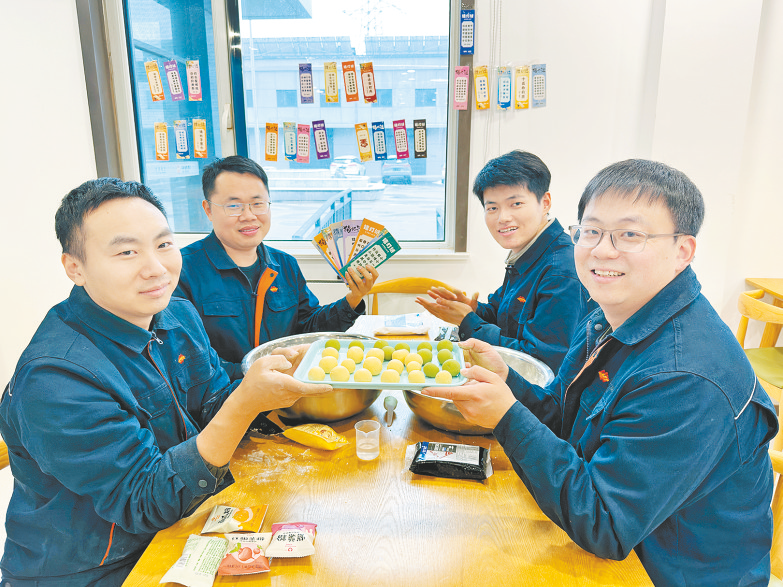 3月3日,龙源电力山东公司职工开展“喜迎元宵手作汤圆”主题活动。图为职工展示自制汤圆。