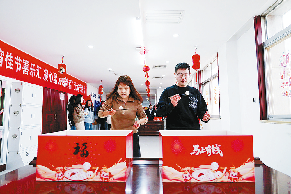 3月3日,神延煤炭举办“元宵佳节喜乐汇凝心聚力谱新篇”元宵节活动。图为“夹元宵接力赛”现场。
