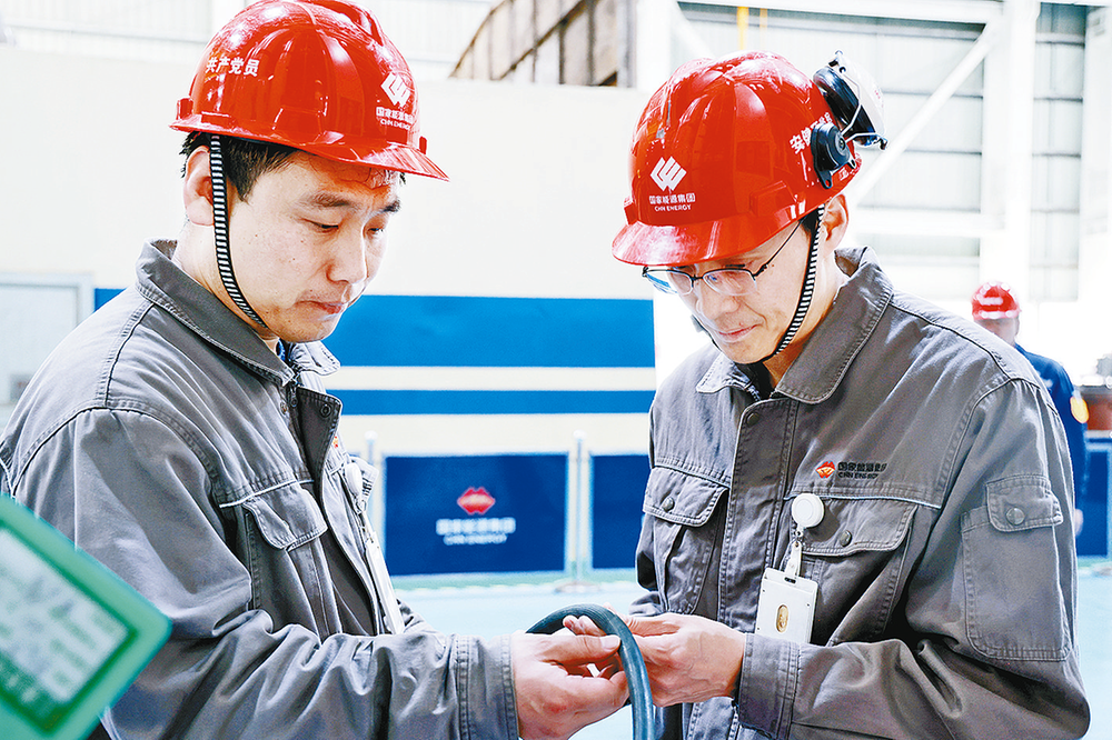 为确保全国两会期间安全供电,浙江宁海电厂强化排查效果,专业各小组交互检查,对设备防范措施再布置、再落实,堵塞管理漏洞,保障机组安全稳定发电。图为3月2日,维护人员现场交叉安全检查。