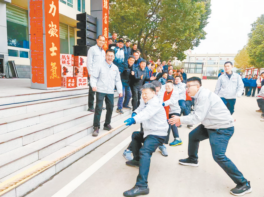 元宵佳节当天,河南民权公司开展“元宵聚力凝士气、团结奋进筑同心”欢乐汇活动,设置了猜灯谜、同心拔河、凝心传球、欢乐袋鼠等特色项目,职工欢聚一堂,其乐融融。图为激烈的拔河比赛。