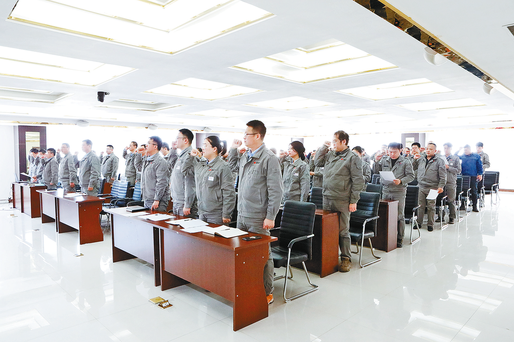 3月4日,辽宁沈西厂举行2026年“事故警示月”暨反违章专项行动启动仪式,全面部署年度安全警示教育与专项整治工作,进一步提升全员安全意识,织密织牢安全生产防护网。图为员工进行安全宣誓。本报通讯员 陶星然 摄