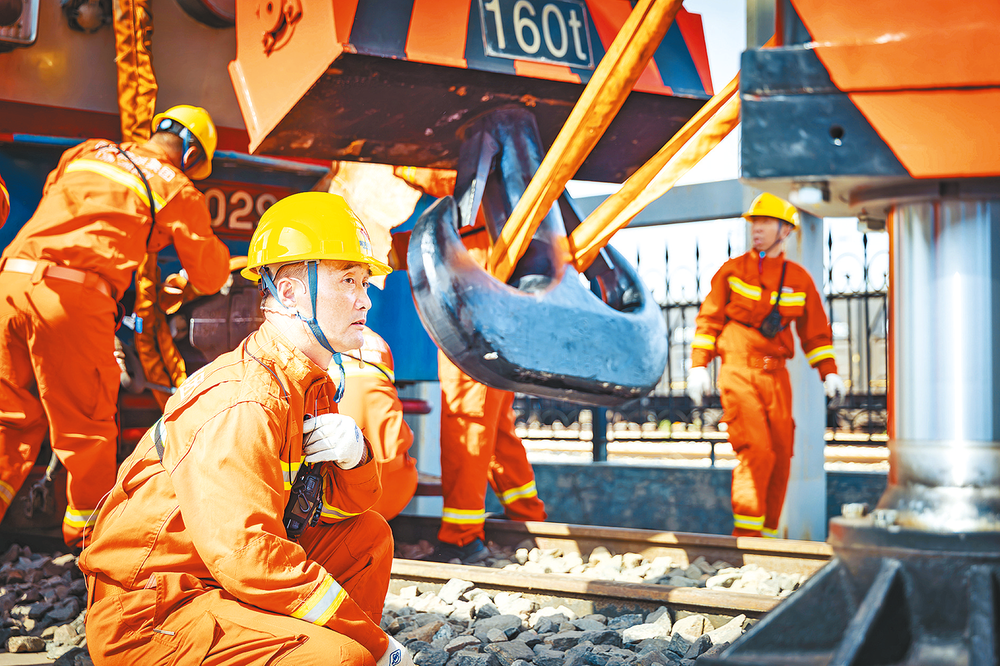 包神铁路机务分公司应急救援中心为全面提升应急救援人员的应急处置能力、协同作战水平,精心组织开展“岗位练兵”活动,同步融入警示教育内容,以演练强技能、以警示敲警钟,实现“练兵+警示”双向发力、双向提升,筑牢铁路运输安全防线。图为3月11日,救援队组织开展救援起复演练。 本报通讯员 李尚昆 摄