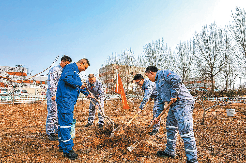 3月12日,国华投资山东分公司开展“植此新绿、拥抱春天”主题植树活动。职工分工协作、默契配合种植树苗,为厂区穿上新装。 本报通讯员 王晓敏 摄