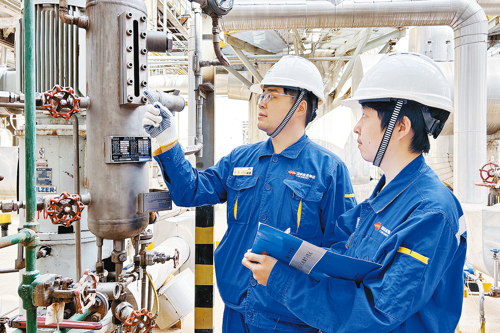 近日,榆林化工针对当前青工队伍知识结构特点,常态化开展“师带徒”培训工作,由各装置班组长及经验丰富的熟练工组成专业讲师团队,充分利用每日当班碎片化时间及班组安全会,带领青工深入现场因材施教、精准培养,进一步提升青工的理论知识水平和实践操作能力,助力青工快速成长成才。图为3月28日,讲师为青工讲解检查脱乙烷塔塔底泵白油罐注意事项。本报通讯员 刘 蓉 摄