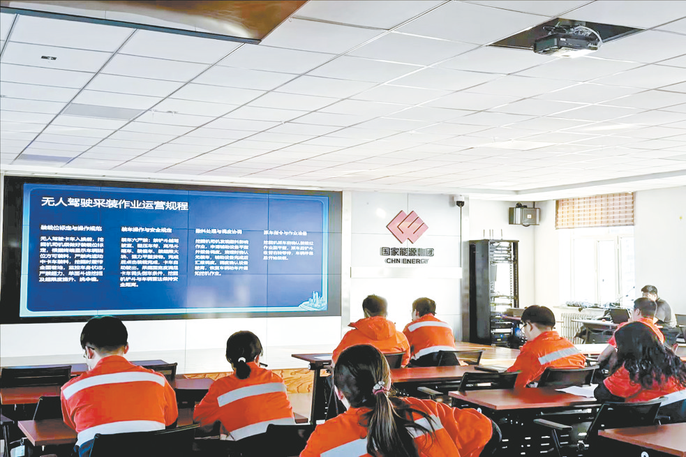 连日来,雁宝能源宝日希勒露天矿组织开展土方剥离工程项目无人驾驶“七新”培训,授课采用“理论讲解+案例分析+实操解读”模式,结合矿区土方剥离作业实际,助力土方剥离工程专业技术人员及土方剥离承包商代表提升无人驾驶作业安全管理与实操水平。图为3月27日,参训人员参加理论学习。本报通讯员