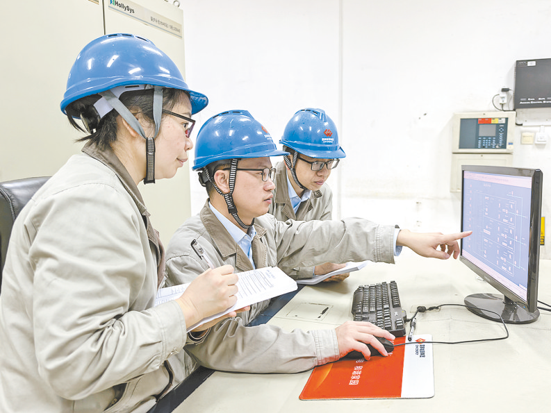 3月31日,福建龙岩公司技术骨干(中)现场讲解DCS组态操作要点。该公司以“导师带徒”为抓手,结合远程泵房无人值守项目开展DCS系统专项培训,持续锤炼高素质技术人才队伍。 本报通讯员