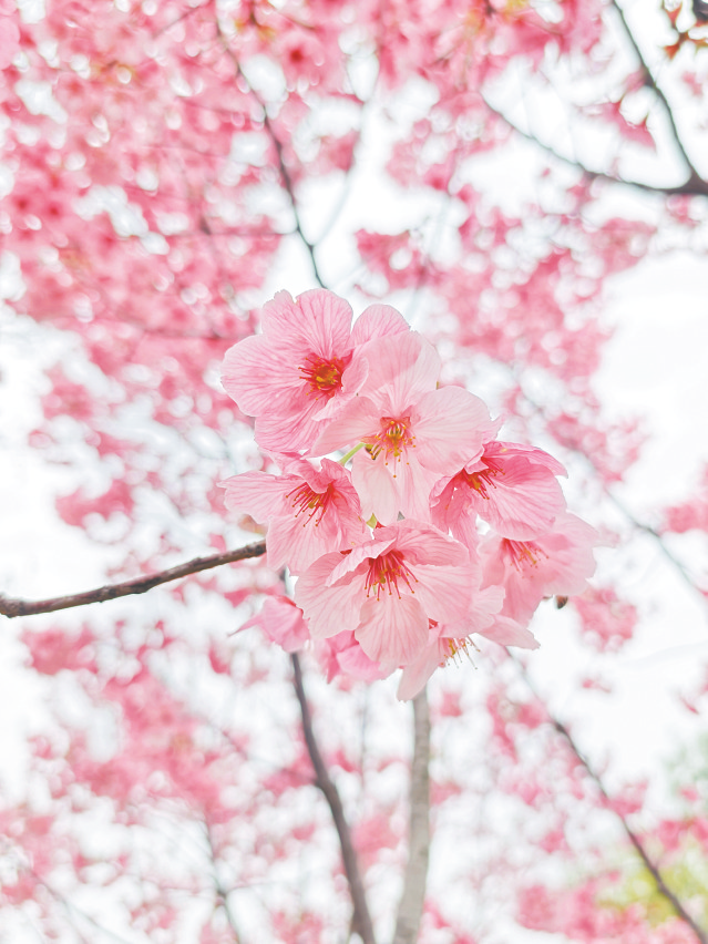 早春的凤栖湖,满树的粉梅绽放,花朵层层叠叠,有的已然盛放,露出纤柔的花蕊,有的还裹着花苞欲语还休,远看像大片粉云漫过天边。