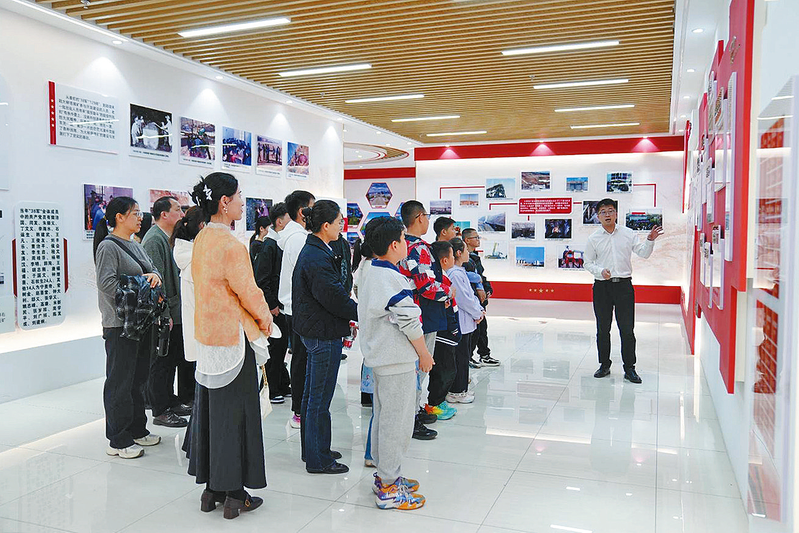 4月上旬,神东煤炭大柳塔矿开展职工子女矿区开放日活动。20余名职工子女在家长的陪同下走进矿区,通过实地观摩生产场景、沉浸式学习安全知识,切身感受企业发展历程与矿山安全管理成果。图为职工与子女共同参观矿史馆。本报通讯员